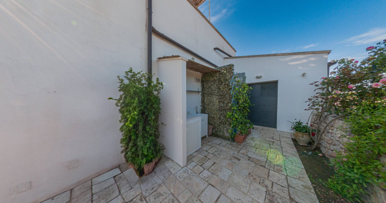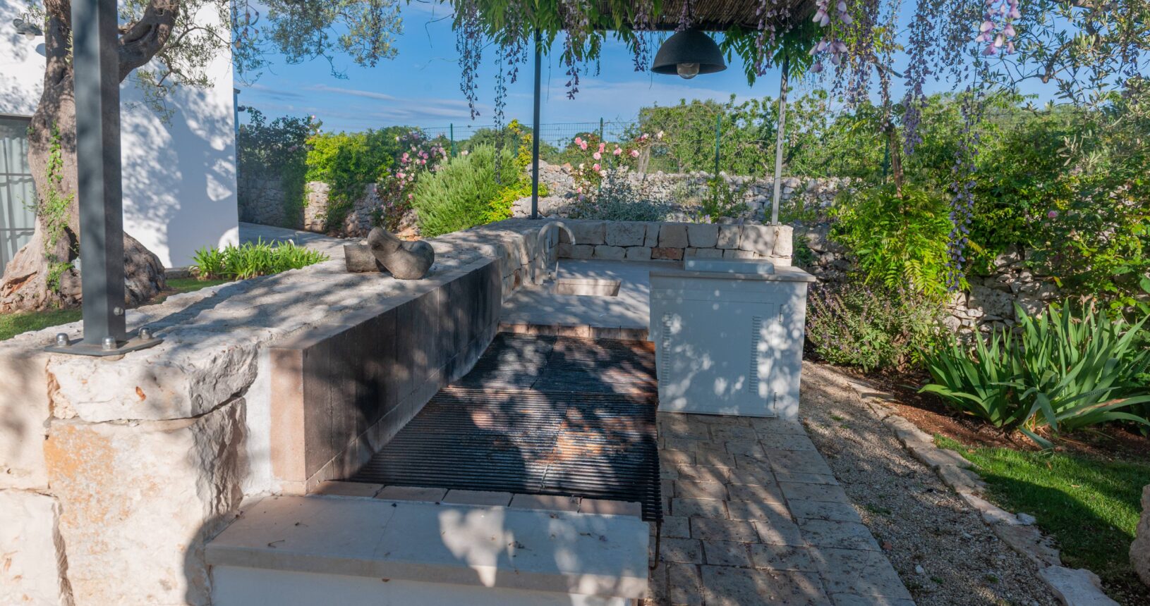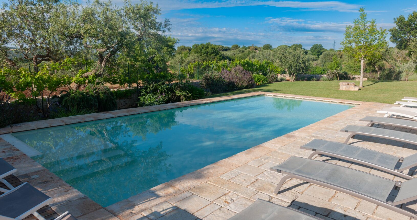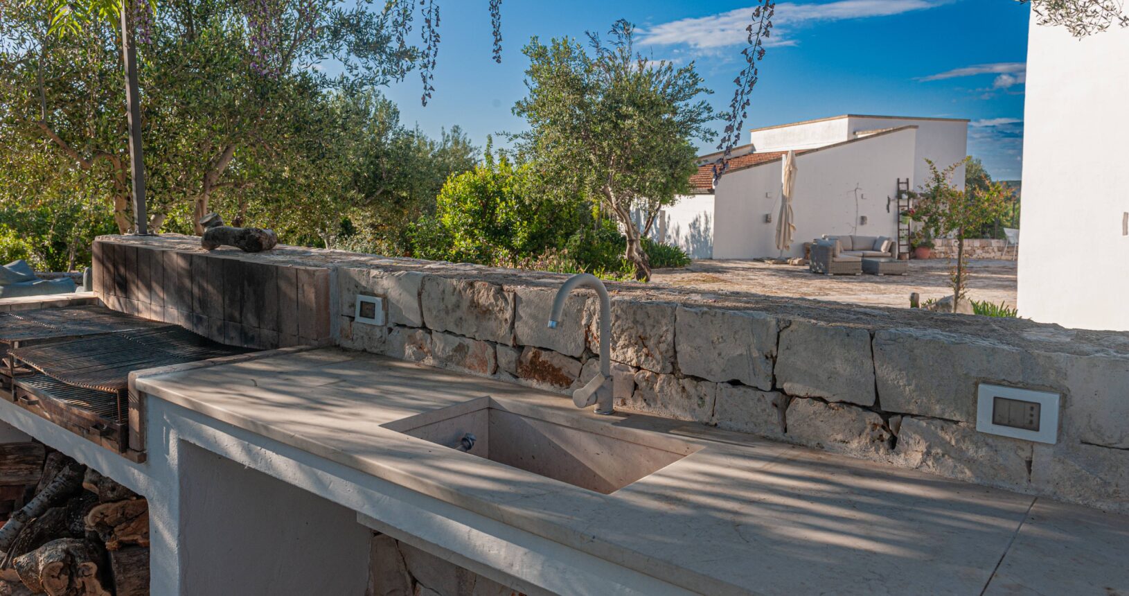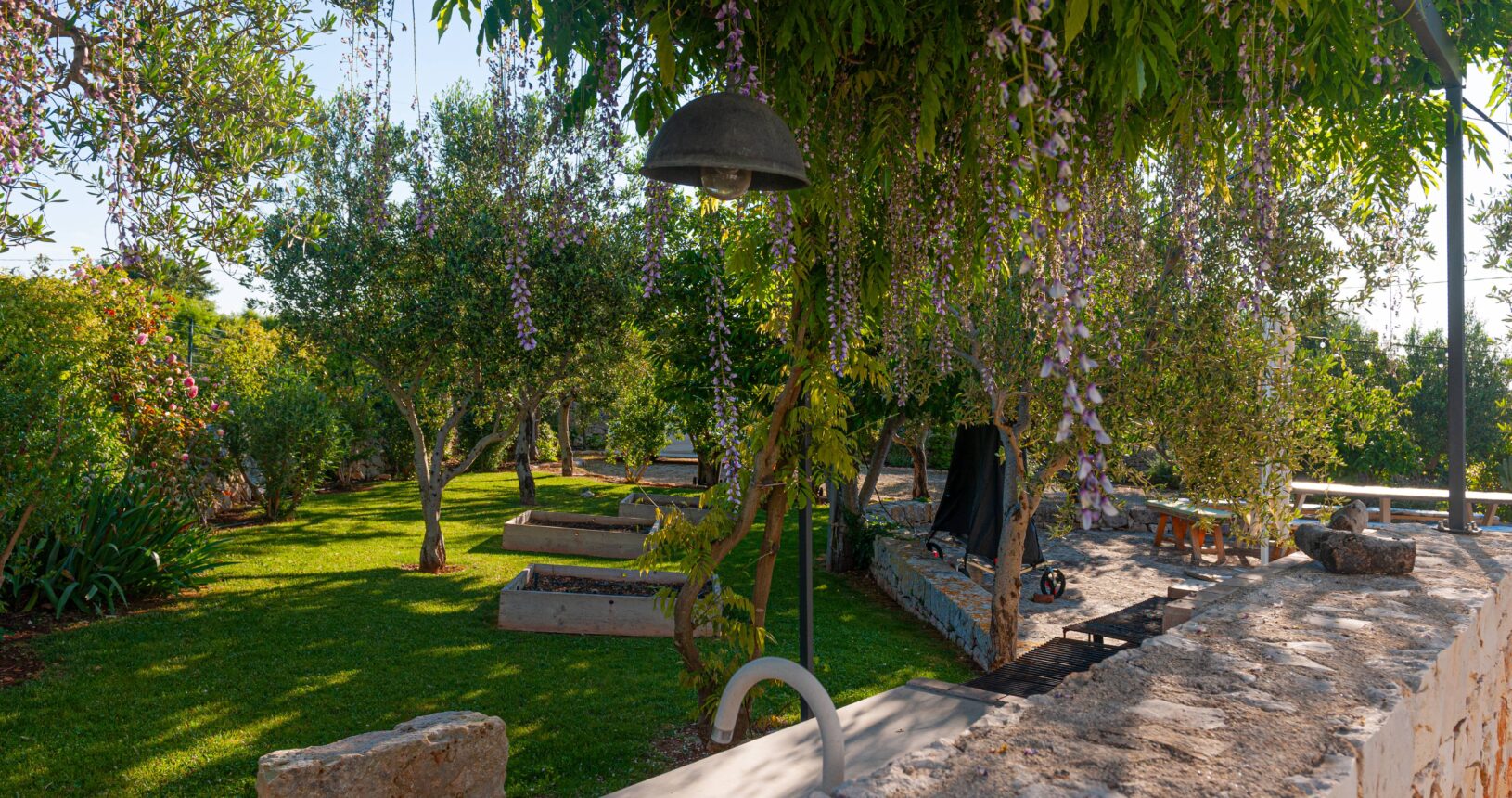 L’Aia di Cucumo è situata in una posizione panoramica del comune di Castellana Grotte, località conosciuta per le sue grotte sotterranee tra le più belle d’Italia, e dista circa 15 km da Alberobello, “la città dei trulli”, e 6 km da Putignano, conosciuta per la sua nota sfilata dei carri a Carnevale. Le è stato dato questo nome in quanto la struttura possiede una delle poche aie nella zona (ampia area in pietra di forma rettangolare che fino agli anni ‘70 serviva per battere e ventilare le spighe di frumento e separare la paglia dal grano) rimaste ben conservate, probabilmente l’unica nella contrada denominata “Cucumo”. Composta da quattro unità abitative indipendenti denominate Lamia, Fienile, Granaio e Palmento, per ricordare la destinazione d’uso che avevano in passato, L’Aia di Cucumo può ospitare fino a 18 persone, oppure essere locata per singoli appartamenti, condividendo in tal caso gli spazi in comune con altri ospiti. La struttura è dotata di una piscina rettangolare in pietra, un barbecue attrezzato per cucinare all’esterno e una serie di piccoli orti per la coltivazione di ortaggi di stagione a disposizione degli ospiti.